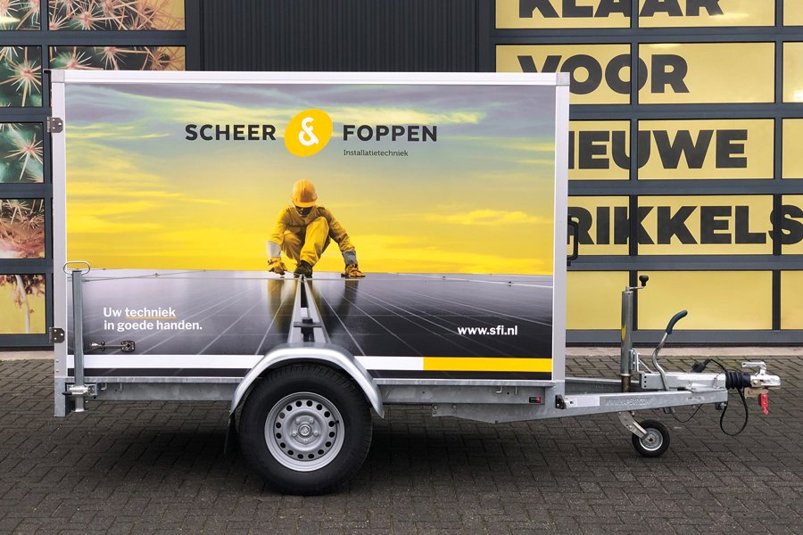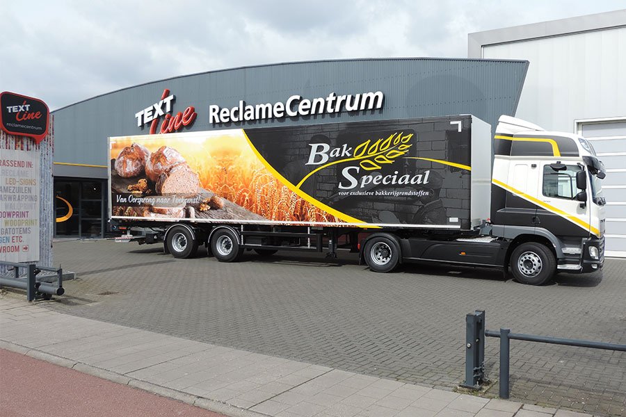 Trailers bieden een enorm reclamevlak. Een oplegger van dertien en een halve meter bij tweeënhalf meter is een rijdend billboard dat van ver zichtbaar is. Trailer belettering vraagt om specifieke kennis en apparatuur, omdat de oppervlakken groot zijn en de montage nauwkeurig moet gebeuren om een strak en luchtbelvrij resultaat te garanderen. Textline heeft de expertise en het machinepark om ook dit formaat vakkundig te verwerken.